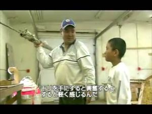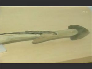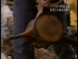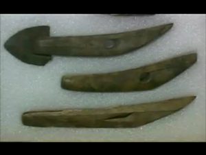使用するモリは木材とクジラの骨を使用 先端に鋭く削った石を使っている