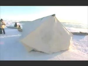漁師たちは氷の上にテントを張り2か月間漁を行う