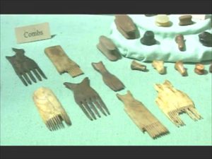 クジラの骨を使った工芸品 骨に細かい彫刻が彫られている
