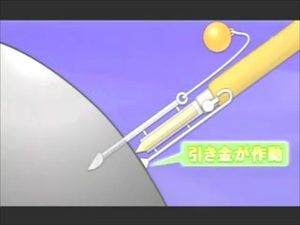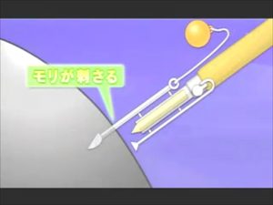 モリがクジラに刺さった際 鯨が海の中へもぐって逃げるのを避けるためモリの先端にはアザラシの皮で出来た浮袋がついている