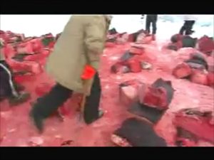 アザラシの革は船を軽くするためマイナス30度の外気で乾かし油分を凍らせて落とす