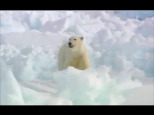 クジラの解体中クジラの血の匂いを嗅ぎつけたシロクマがやってきた。