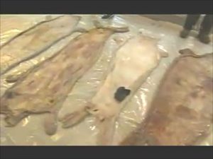 内臓の皮は太鼓の革に使用される 骨を除いてすべて使用される