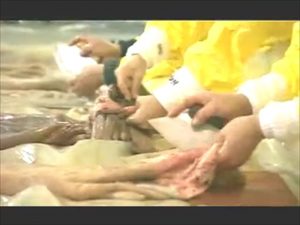 歯茎もコリコリしてうまい 生肉を素手で食べる 集まった人 600人に分けられた