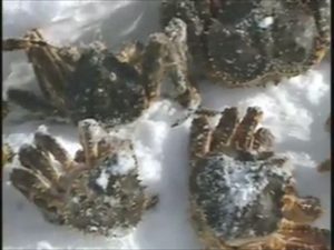 次から次へとタラバが釣れる 取れたタラバガニはその場で殻に穴をあける