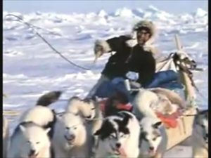 白人の登山隊は原住民と犬ぞりと一緒に登山に臨んだ