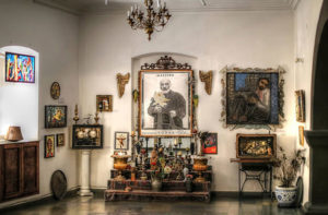 内部は煌びやかな装飾が施されている 祭壇には金で出来た十字架と聖書が飾られている