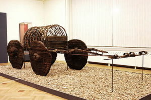 共和国広場前 5000年前の世界最古の革靴などを展示