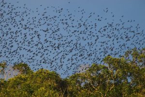 夕方になると洞窟から300万匹の蝙蝠が一斉にとびだちます。大空で蝙蝠の大群が円を描くのは蝙蝠の天敵となる鷹(タカ)を威嚇するためだそうです。