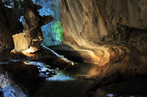 見どころとして100メートルの天井から落ちる水滴やシャワーのように水が噴き出す鍾乳洞があります。