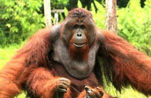 何とも愛らしいオラウータンですがボスだけは例外で顔じゅうの皮膚が垂れ下がりとても いかつい顔をしています。さらにオラウータンの鼻息は非常に臭いそうです。