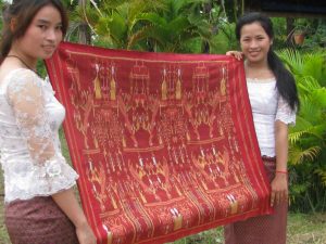 (産業)黄金のシルクを使用 クメール織り 蚕から手作り カンボジアの蚕は冬眠しない 5色のクメール織り