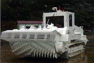 (地雷)推定600万個の地雷が今も埋まっている 負傷者は5万人以上 地雷撤去の後 地面を耕す大型ブルドーザーのような機械