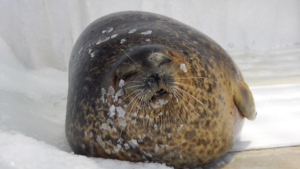 体に輪っかの模様があるのはワモンアザラシ イヌイットのアザラシ漁は白い布で身を隠し 十分にアザラシに近づいたところで仕留める