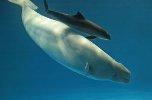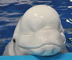 シロイルカ 別名ベルーガは大きく全長4メートル 体重は1トンもある 警戒心が少なく好奇心が旺盛 絶滅危惧種に指定されている