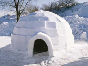 イヌイットの家 イグル 氷の住居 家の中で湯を沸かすと氷の壁がいったん解けるが再び凍りだし強度が増す