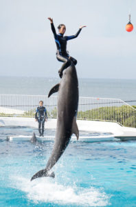 イルカショーで見られるリフトアップ(イルカが人間の体を中高く持ち上げる行為)