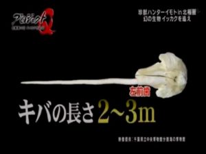 頭から一直線に伸びた槍のような突起物は角ではなく左前歯が進化した牙 その牙はらせん状になって伸びている