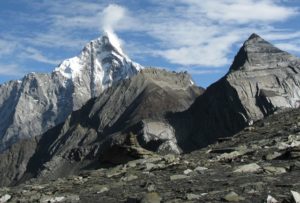 山頂がギザギザした雪山