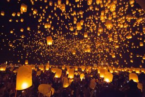空に飛ばす提灯 元々は諸葛孔明が軍事用に挙げてた物