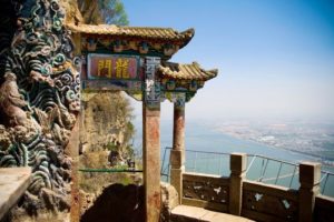 垂直の断崖に道を作り作られた寺 湖畔の寺は大観楼