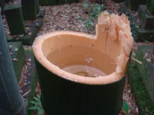 硬水はカルシウム ミネラルが豊富で 酒造りに適している 〇竹ずつ蒸しご飯(中には豚肉の燻製ともち米が入っている)