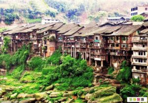 人口7000 30件の酒場がある 酔っ払いが多い 崖に民家が 人々は300~500年前に住み着いた 豆腐と一緒に飲む白酒