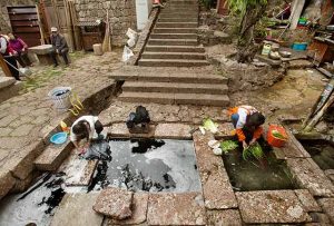 3層のため水一番上は飲み水 2番目は野菜洗い 3番目は洗濯 市場では豆腐やあぶらげが売っている 中国仏教 道教 チベット仏教の壁画