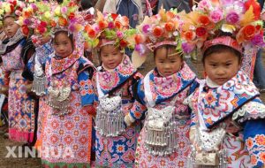 ミニスカートを19枚重ねてはく そのほか 長角や花ミャオ族がいる