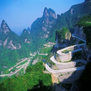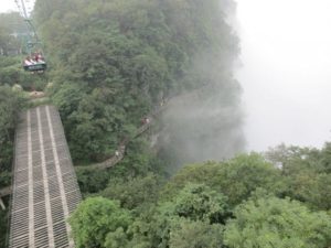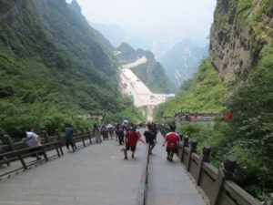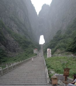 その穴を抜けると張家界に着く 平均標高 1400メートル 4000段の石段