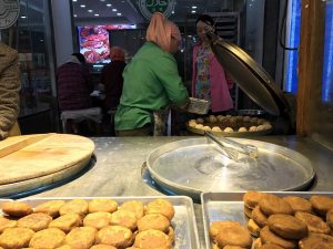 イスラム料理専門店 ちぎったパンの上に羊スープをかけ食べる