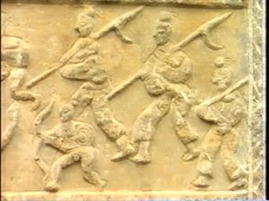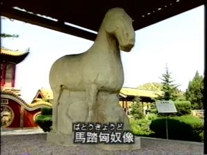 馬踏匈奴像(ばとうきょうどぞう)が匈奴を踏みつけている様子が彫られた石像