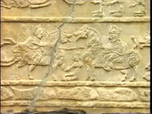 石には漢が匈奴に勝つ様子の彫刻が彫られている