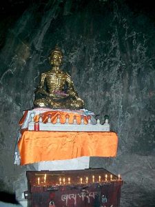 (前正覚山)ブッタが6年間苦行を行った場所 洞窟内に皮と骨だけになった黄金のブッタ像が安置されている