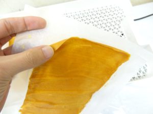 (フルーツレザー) 革製品のように見える食べ物 色鮮やかなビニール製品にも見える