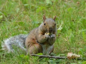 近代的なビルと石畳の床の調和がとれた街 町中にリスがいるなど自然豊かな都市