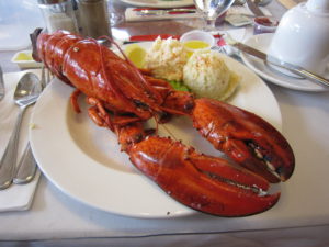 ロブスター 一皿30カナダドル(約3200円)を出している ロブスターは溶かしバターをつけていただく
