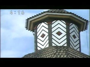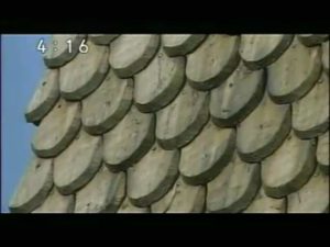 屋根は魚のうろこのような模様 雪が屋根に詰まらないよう急角度になっている
