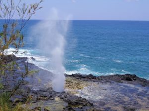 海辺では波が岩場の地面から噴き出る場所がある