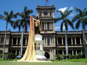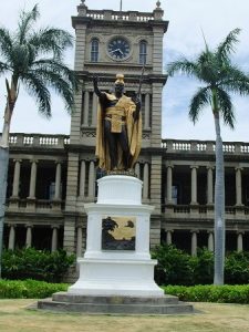 本物の大王像は ハワイ島コハラの旧裁判所前に立っている