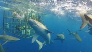 海中のサメを観察する 参加料は120ドルもする※子供60ドル