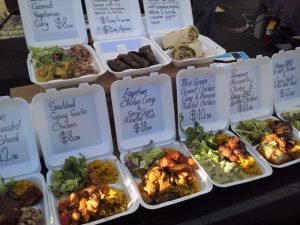 野菜他 調理済みの食べ物などが売られている 多くの人がに集まる