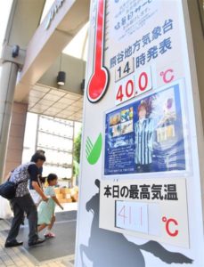埼玉県熊谷市で5年ぶりに観測史上最高気温となる41.1度を記録した。