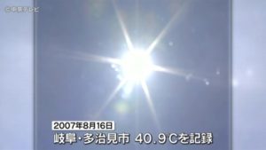 夏 岐阜県多治見市と埼玉県熊谷市が観測史上最高の気温40.9度を記録する※2020年現在 国内最高気温は浜松(静岡県)と熊谷(埼玉県)が持つ41.1度※