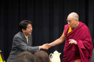 ダライ・ラマ14世がインドの亡命先からアメリカに向かう途中 日本を立ち寄って安部夫妻(元首相)と会談を行った