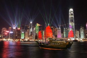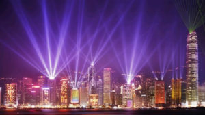 ライトアップされた川沿いのミュージックナイトショー(新年の花火)九龍半島