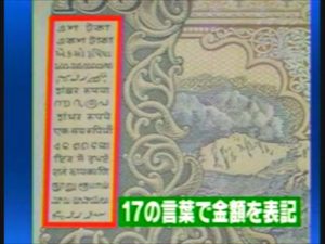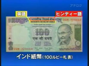 ガンジーの絵柄ののったお札には表面の大きなところにヒンドゥー語と英語