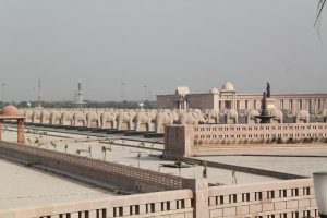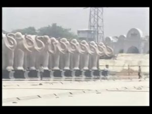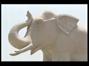 大衆民主党のシンボル白い象が60頭も並んだ党の公園