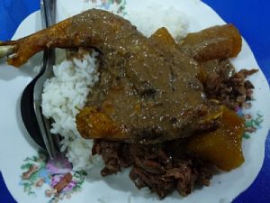 その不思議な食感の正体はジャックフルーツだそうです。鶏肉とジャックフルーツを香辛料で煮た名物料理となります。