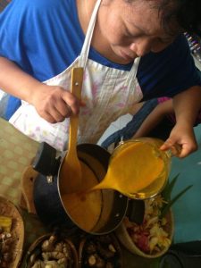 またインドネシアでは定番の調理器具 スパイスをすりつぶすときに使う石臼も ボロブドゥール遺跡と同じ素材 安山岩を使っているそうです。